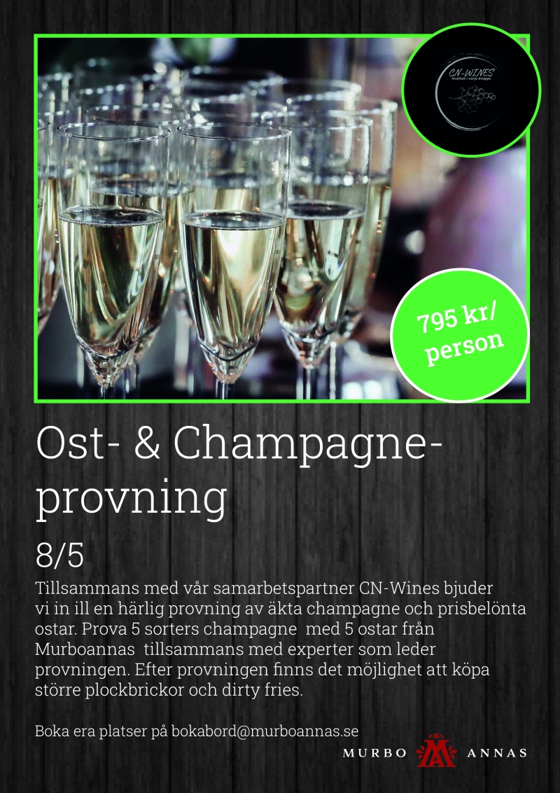 Den 8e maj bjuder i in till en provning med Champagne och ostar.