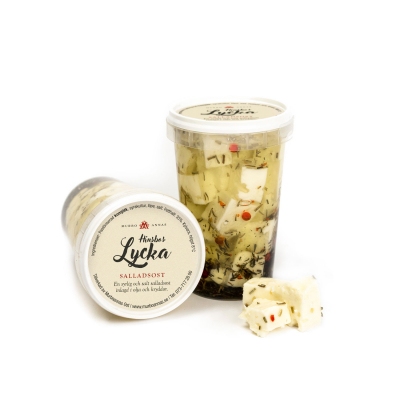 Salladsost En gräddig och salt salladsost som efter lagring varsamt badas i saltlake i fem dagar.